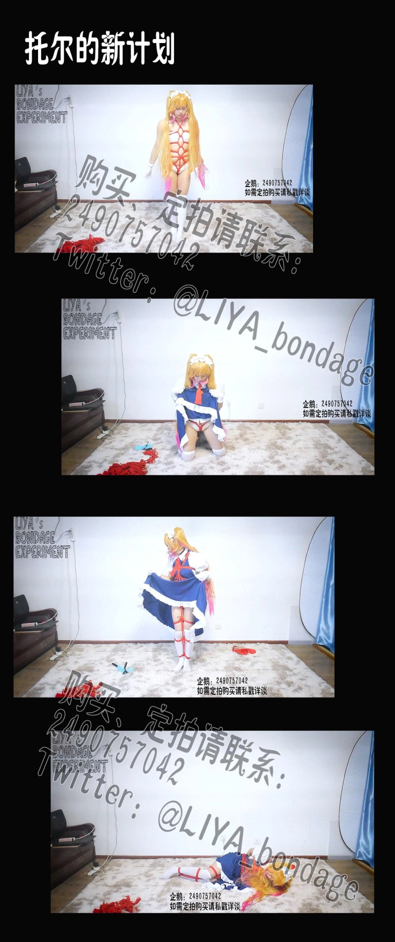 小林刚下班回家就被托尔不由分说地按在了椅子上,随后就看到只穿着内衣的托尔拿出几条绳子,熟练地给自己绑了个龟甲,傍晚后又换好了平时穿着的女仆装,在女仆装外面又绑着一条又一条的绳子,最后又用手铐将她自己拷好后,在小林面前挣扎呻吟着~