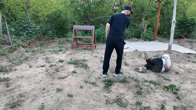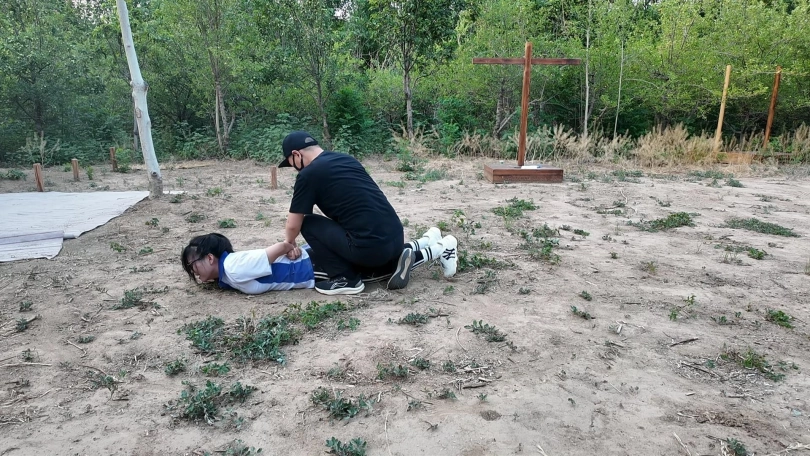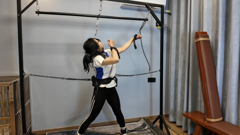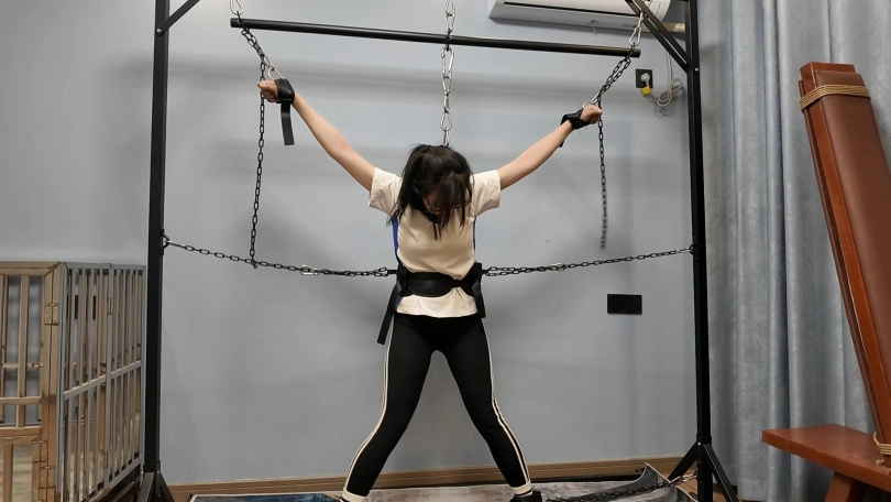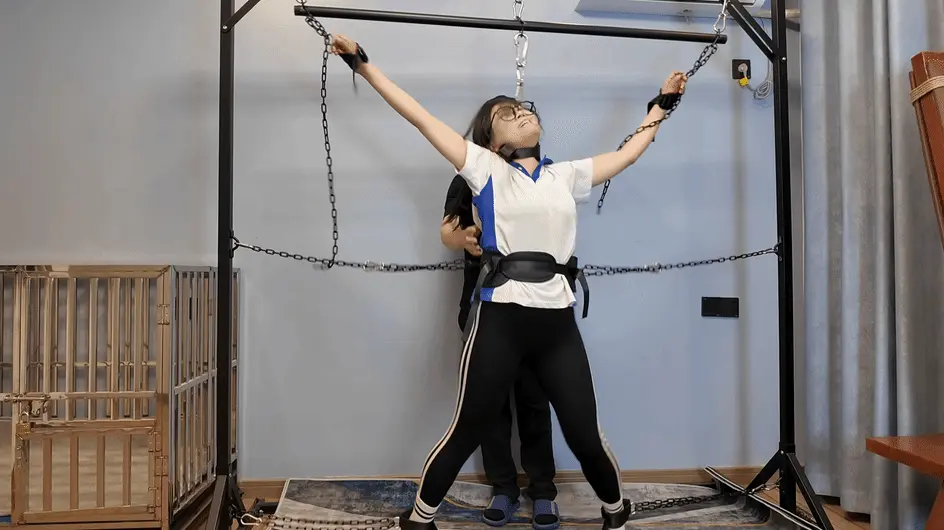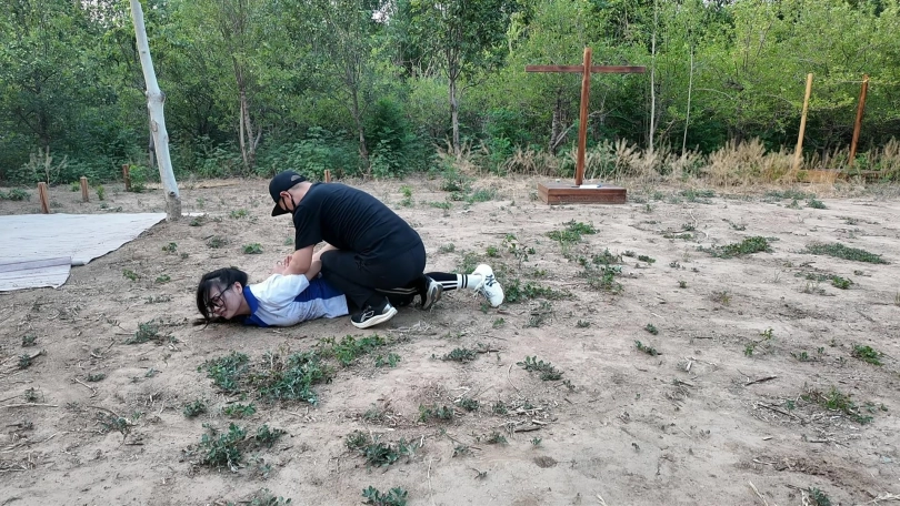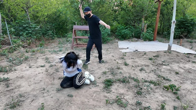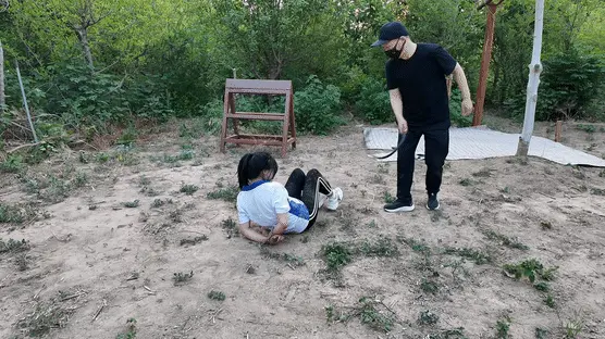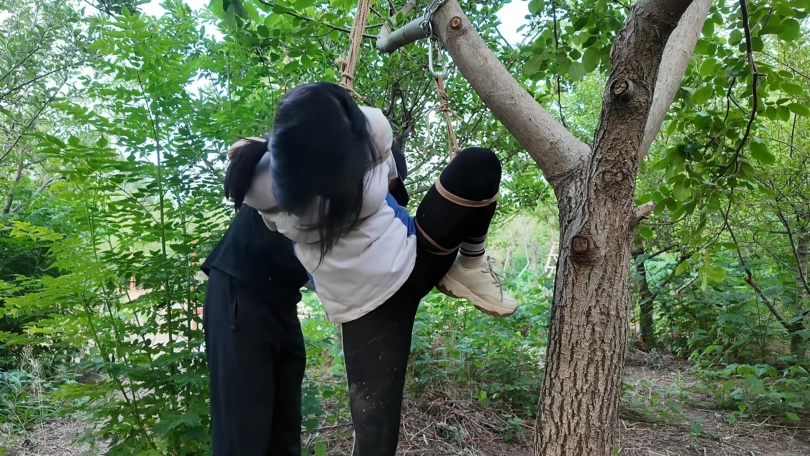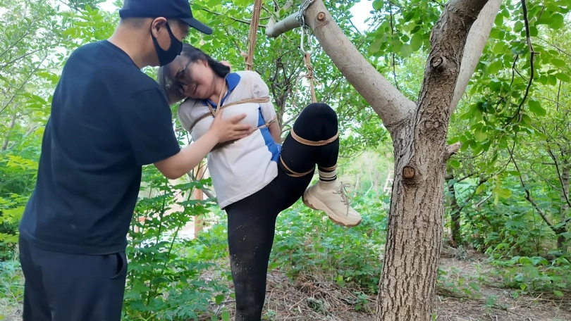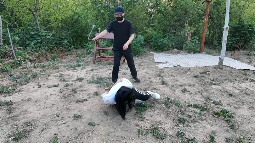 再次惩罚小遥,先把她固定到架子上Tk,,直到失紧,放置最后自己逃跑,被抓住,咋户外场地鞭打,脚踹,最后又绑到树上强告