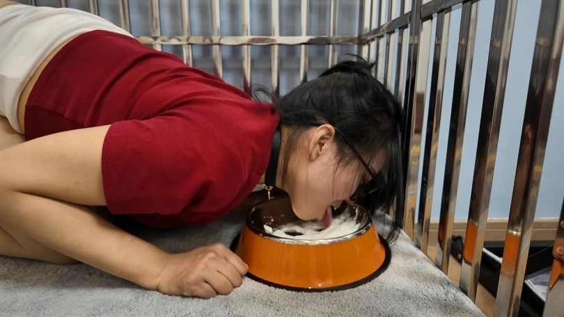 佳佳S属性大爆发,狗N训练小瑶,皮鞭打的那叫一个狠,那是轮圆了抽啊,耳光,语言侮辱,最后还把小瑶关到笼子里面,命令舔食牛奶,这次小瑶m属性也是大爆发,活脱脱就是一条小母狗,尤其是关笼子里面,舔的非常到位
