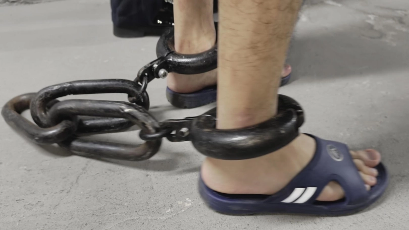 他被带手铐重脚镣关押在看守所里,试图逃跑但被抓获。jc继续审问李阳,并以加码的刑罚威胁他。最终,李阳被判犯间谍罪、袭j罪、越狱罪,被判处无期徒刑。因他不老实,带新刑具三环脚镣,又加了一副脚铐被关押。