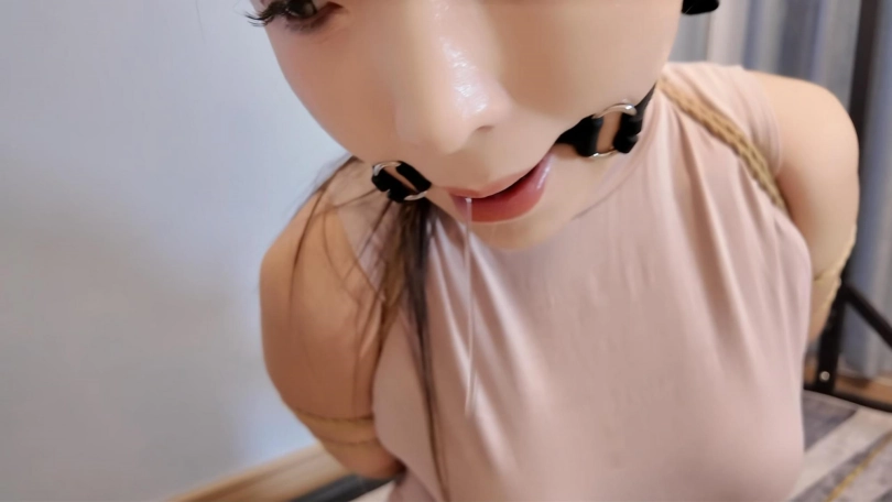 推开房门,佳佳灰丝体恤被捆绑放置到体验室,嘴里被口球紧紧的堵着,口水不由自主的流到她那大长腿上,随着时间的推移,口水越来越多,滴满了大腿,这个时候解开束缚,命令她脱掉这个沾满她自己口水的丝袜,塞到自己嘴里,再用胶带封上,继续放置