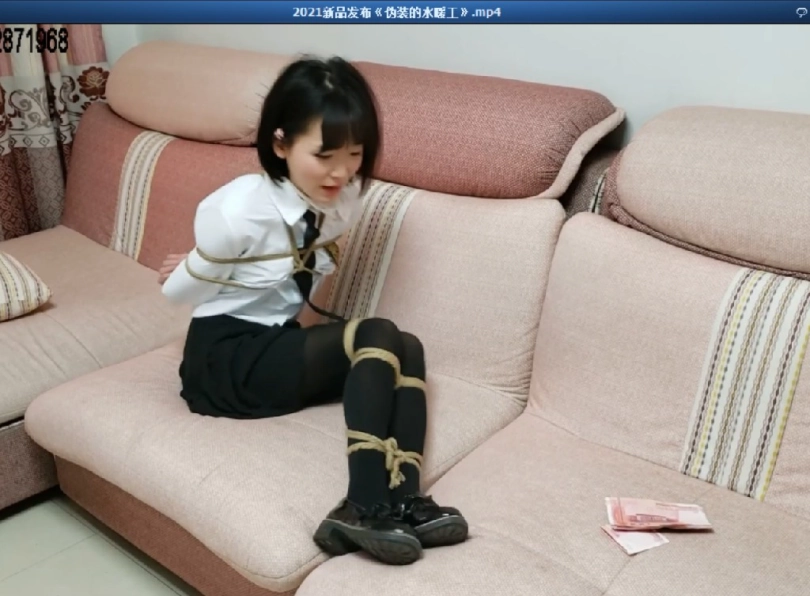 周末的一天,莹莹独自回到家中,刚刚进屋就被一把刀逼到了墙角,她遭遇抢劫了,原来是个伪装的“水暖工”.....劫匪把莹莹手脚捆住,又找到莹莹的白棉袜狠狠的堵住了她的嘴,自己去找钱财了,过了许久劫匪回来了,只找到了几百元钱和一张银行卡,继续逼问莹莹银行卡密码,莹莹说不记得了,气急败坏的劫匪把莹莹身上加了几捆绳子捆成驷马,又扒下莹莹的内裤堵嘴封住,拿走了莹莹仅有的几百元钱扬长而去.....