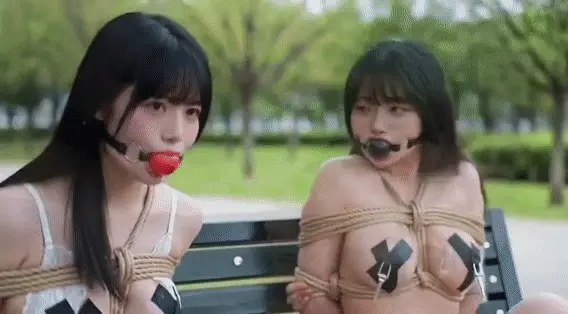 两姐妹被专业绳师捆成粽子,粉嫩口球塞满樱桃小嘴,呜呜声不断。