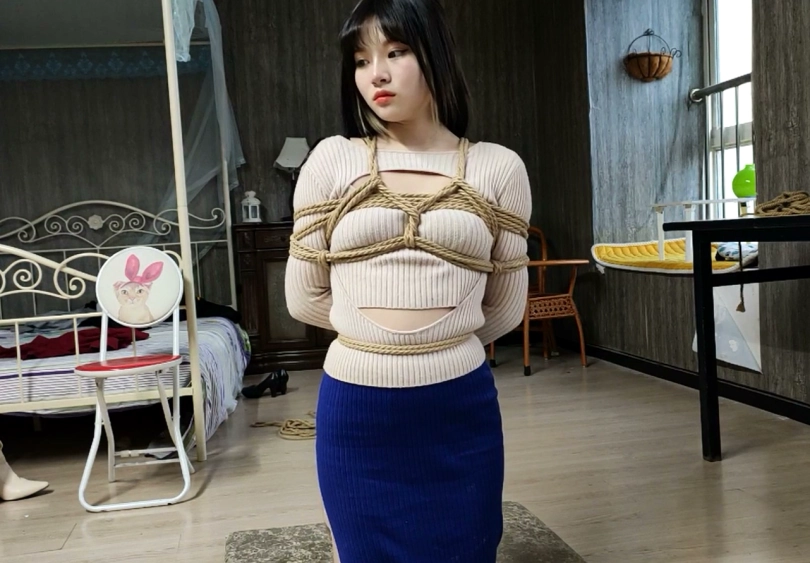 小琛笑起来真的很好看,两套服装,两种绑法。