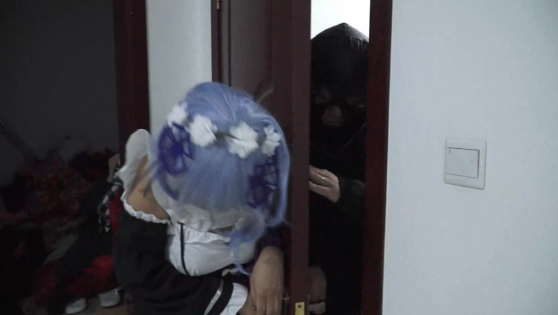 正在用捆绑捂晕,外加一点温柔缠绵拥抱来惩罚拉姆的雷姆,却突然发现屋子了有动静,原来是一名入室的小偷。慌张的她想用恐吓的办法吓跑小偷,但小偷发现面前的雷姆并没有呼救,便想把她绑起来,好一走了之。进入的里屋的小偷发现,原来雷姆绑架了别人所以不敢出声,没有顾虑的小偷将拉姆雷姆绑在一起,还拿一条大丝袜将二人紧紧包在了一起,嘴对嘴永远处于束缚之中
