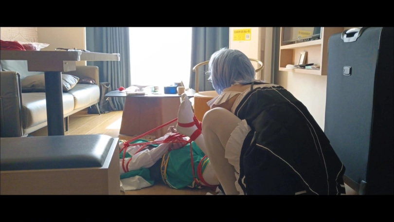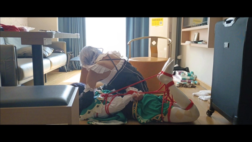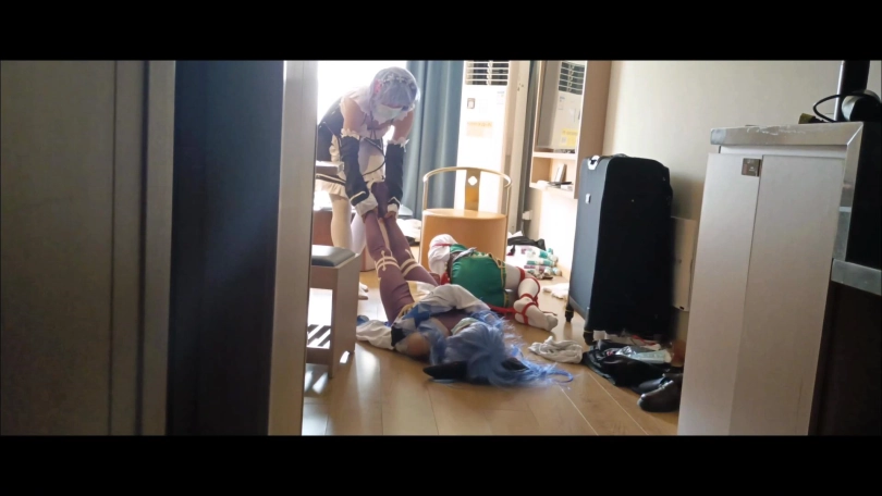 真奇怪,是这里吗?到达地点的温迪浑不知自己已经落入了圈套。被早已准备好的蕾姆袭击……即便察觉不妙的甘雨前来营救,也未能挽回两人被绑架的命运……两人被绑在一起难受挣扎。甘雨已经被定好售价,而可爱的温迪还要被装箱带走……