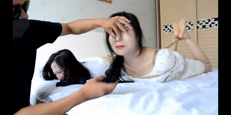 【视频时长】:00:23:39 【文件大小】:786MB 剧情介绍:接上回 劫匪回来了,说到,你们两个干的不错啊,看我怎么收拾你们! 切镜头后,二人在床上都被绑上了驷马, 劫匪疯狂地去挠文清和诗涵的丝袜脚心,二人反抗剧烈,可也无能为力。 劫匪用手抬着文清的头问道,告诉我,你们的原味内裤在哪里? 文清说,你这个流氓,我不会告诉你的! 劫匪说,是吗?开始抚摸文清的大腿和臀部。文清呜呜直叫。 诗涵说,你放开她,放开她! 劫匪开始抚摸诗涵的臀部,抚摸诗涵的大腿。 劫匪说:你们再不说,我把你们两个脱光了衣服扔到街上去! 文清说:不要,我告诉你,就在衣柜里面。 劫匪从衣柜里面拿出两只内裤。 随后拿起两条内裤,说道,这是小姑娘你的内裤吧,还有体香,先给你舍友尝尝鲜。 诗涵拼命摇头说:不要,脏!我不要吃内裤! 歹徒捏诗涵鼻子,迫使张嘴一点一点塞了进去。 又对文清说:你自己内裤什么滋味的,你来尝尝 文清说:你在做什么,你这个变态,我告诉你,你这是在犯罪。 劫匪强硬地塞进了文清嘴里。 二人脚上穿上各自的高跟凉鞋,高跟鞋,劫匪离开,文清和诗涵在床上翻来覆去,一会头朝上,一会头朝下,想解开束缚,文清甩掉了脚上的高跟鞋,没有其他什么进展。二人只好侧着身子,试图弄出对方嘴里的束缚,文清用手扯出诗涵的堵嘴物,诗涵和文清侧着身子脸对脸,帮文清咬出堵嘴物(特写)。 文清说,这个坏蛋真是变态,居然用内裤堵嘴。 诗涵说,我们快点大声呼救! 二人刚喊了声救命呀。 没想到劫匪没走,冲进了屋里,说到,你们好大的胆子!看我怎么惩罚你们! 二人在床上闭腿缚,文清被黑色高跟鞋扣住口鼻,银色胶带固定高跟鞋 文清呜呜直叫。 诗涵对劫匪说道:你把她嘴上的高跟鞋拿掉,她很难受! 劫匪说:美女,不要着急,这就轮到你了!随即拿起口球给诗涵戴上后离去。 卧室中,文清被五花绑,文清坐在椅子上,脚被绑在椅子两角,诗涵如下图姿势,被五花绑起来,诗涵侧身坐在文清腿上,两人嘴上被黑色长筒袜勒住嘴。(不要忘记二人上半身胸部始终被勒住),二人的丝袜都被扒了下来,处于光腿状态。 二人无助扭着身子呜呜直叫,文清勒着含糊不清地说道:我们嘴贴嘴,解开堵嘴物试试。 文清想用嘴贴嘴,帮诗涵蹭开堵嘴物,却没有什么效果,诗涵从椅子上一屁股坐到地上,想用脚解开文清脚与椅子之间的束缚,却因为穿着高跟凉鞋无法做到。 切镜头后,劫匪回来,文清仍在椅子上被绑着,诗涵地上绑法如下图,两人嘴上仍旧被黑色长筒袜勒住嘴,呜呜直叫 劫匪去脱诗涵两脚的高跟凉鞋,诗涵在地上拼命挣扎两腿,但是还是被脱下了鞋子,诗涵裸足特写 劫匪手里拿着高跟凉鞋,两双刚脱下的丝袜,对二人说道,没想到劫财还有意外收获,小美女们,你们的丝袜和鞋子我就收下了。 二人愤怒的呜呜直叫。 劫匪扬长而去。 ![]() ![]() ![]() ![]() ![]() ![]()