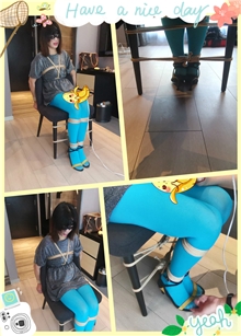 【JS】瑾萱 蓝色胶衣 胶带封嘴 椅子束缚挣扎