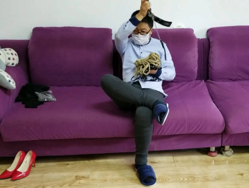 1.杀人狂坐在家中,收拾道具,等待小曼上门,听到门铃,便去开门。小曼身着西装制服,灰丝黑高进来,两人坐在沙发上互相介绍,寒暄了几句。杀人狂便问你怎么穿着这么正式就来了?小曼说自己是兼职,一下班就过来了,来不急换衣服,还说自己是做这行时间不长,第一次上门,有点紧张。杀人狂说,那你先把衣服换了,适应一下气氛,便递给小曼一套性感衣服(黑色花纹透视装 黑丝 红高跟),让小曼进屋换衣服。