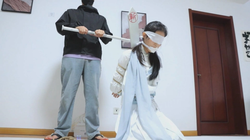 【视频时长】:00:18:07 【文件大小】:1318MB 【前言】语汐这个模特感觉还是不错的,最终这个故事我也没有设定成悲剧,而是用一招瞒天过海来让女侠存活下来,历史上也有很多这样的例子呢,所以还算符合时代背景,就是便宜了这个店小二(当然他如果只是个普通店小二也太拉垮了,所以我给他设定了新的身份)。 第三集的内容是押解游街和斩首内容,我印象里我做过很多这样的作品,非常喜欢把女性绑好之后被人牵着走,想象着被很多人指指点点的感觉,这样的羞辱远比单一的刑罚更折磨人,因为嘴被白布袜塞住,双手又被折断还被绑了起来的情况下,无论是逃跑还是申辩都做不到,只能一步一步的走向斩首台,自然,在那长长的古装之下,她的腿和脚踝也被绳子给限制了,只能小步小步的走动,更何况还被脱掉靴子只能穿着白布袜呢,涩!至于瞒天过海之计,也就是个小把戏了,谁不喜欢把这样一个武功尽失的前女侠留在身边当做玩物呢? 【亮点】古装女侠语汐+喜闻乐见的游街羞辱+被折断双手,白布袜塞住嘴有苦难言+最整个处刑流程都有,好这口别错过哈+店小二:我一招瞒天过海,6不6? 翌日,官府发布告示昭告天下,天字第一号通缉犯,冷面女侠萧汐雪因与朝廷作对,已被捉拿入狱,今日堂审后直接判处斩首,枭首后以正天威。 女侠带着木枷和脚镣,仍然戴着面纱,但似乎只能闻见细微的呜呜声,似是被什么东西堵住了嘴无法言语,被迫跪在公堂之上。 县官老爷威严的声音传来:罪犯萧汐雪,自诩冷面女侠,在民间为非作歹,滥杀无辜,打着拯救黎民百姓的旗号招摇撞骗,有损天威,今日在公堂之上可有什么想要辩驳的? 女侠好像无法辩驳,只能呜呜叫,想要起身但被身边的衙内按下去。 不得已,女侠只能摇了摇头,表示没有要反驳的。 似是得到了满意的答案,县官老爷十分干脆:好,既然你没什么要反驳的,那么本官宣布判处罪犯萧汐雪斩立决,即日执行! 在听判决的女侠似乎不敢相信一般挣扎起来想要逃走,却被身边的衙内轻而易举的踢了腿再次跪了下去,又一拳打中腹部,疼的弯腰倒下。 被去掉木枷后,女侠娇弱的宛如弱柳扶风般,可衙内并未怜香惜玉,抓着女侠的胳膊暗自用力一折,女侠手臂被折断,挺胸抬头透过堵嘴长长的呜了一声,另一只手也是如此,女侠的两只手就像无骨了一般无力的垂下,女侠仅能拼命摇头。 衙内丝毫没有同情,拿着绳子将她五花大绑,说道:堂堂一代女侠,怎的如此贪生怕死?不过是折了你两只胳膊便要如此求饶,你杀了许多官差时可曾想过此番下场? 将她绑好后将她双手吊高,用白布蒙上双眼,摘了她的面纱,再背后插上亡命牌,果然,女侠的口中还塞着白布袜呢,怪不得有口难言。 衙内为了进一步羞辱女侠,将女侠的长靴脱掉,只留着脚上的白布袜,说道:既然你已成为阶下囚,这靴子你就不必再穿了,之后去往处刑台的路你就只能穿着这双白布袜走了,希望这对于我们的冷面女侠来说不算太折磨吧。 然后又将女侠的膝盖和脚踝都绑上绳镣,用绳子做了个牵引绳套在她脖子上,牵着她游街走,在百姓的注视与议论下走向斩首台。 走上斩首台的女侠被按着跪好,衙内拿着女侠的佩剑,然后拔出剑来,对女侠说:你恐怕做梦也没想到,会被你自己的佩剑斩首吧。 女侠长鸣一声,随后便听到了执行的宣判:午时三刻已到,行刑! 手起刀落间,将女侠扭送官府领取了赏钱的店小二此时正高高兴兴的数着钱,而他从房间唤出的,竟是身着镣铐的萧汐雪女侠本人?这,难不成—— ![]() ![]() ![]() ![]() ![]() ![]() ![]() ![]() ![]() ![]() ![]() ![]() ![]() ![]() ![]() ![]() ![]() ![]() ![]() ![]() ![]() ![]()