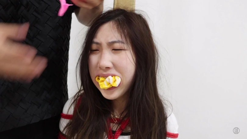 【文件大小】:1828MB 安安上半身被日式紧缚,下半身跪着的姿势,紧紧的捆绑在柱子上。大哥走了过来,抓住她的头把她弄醒,然后解开她的耳塞,让她老实听话,安安点头答应后,大哥把她眼睛的胶带撕下,接着解开嘴巴上的胶带,就在大哥整理胶带时,安安把内裤吐了出来并说着受不了了,此举动激怒了大哥,大哥抓住她嘴巴捏开张大,然后将一双臭耐克袜子塞了进去,接着用几块透明胶带封上。封堵完毕,安安只能发出呜呜呜声音,大哥拿来鞭子毛刷,来到安安身后,脱了她的空军一号鞋子,再接着把大白棉袜也脱掉,光着脚。安安只能光着脚又不能动弹的接受大哥的挠脚心了!挠完脚心,大哥又将鞋袜拿到安安面前,让她闻袜子,闻鞋子,闻后安安含糊不清说:受不了了,想吐。大哥帮她撕下胶带,胶带一撕开,安安就忍不住把耐克袜子吐出,这举动召来大哥的不满,大哥马上让她闭嘴,然后拿来杯子让她把口水吐到杯子里,等安安吐了口水后,大哥将一双黄色麻叶袜子塞入安安嘴巴里,接着用粉色绷带缠绕封上,再用红色静电胶带封住嘴巴,安安的呜呜呜声音越来越小,大哥拿来鞭子命令她把头靠在柱子上,不然就抽她的脸,安安照做头靠柱子,身体接受鞭打。一鞭一鞭抽下去,安安一声一声的呜呜呜却越来越无力,最后晕了过去。 ![]() ![]() ![]() ![]() ![]() ![]() ![]() ![]() ![]()
