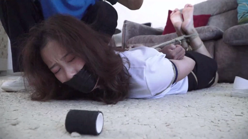 【文件大小】:905MB 女模特家欣和亚男出演。 炎热夏日到了,女孩家欣和穿青花色旗袍的好闺蜜亚男觉得无聊没啥事干,家欣的表哥锁哥提议玩个打赌游戏,自己拿绳索把家欣亚男两女捆绑起来,塞住嘴巴,只要二女当中有一个人能在限定时间挣脱开,自己就分别给二女一笔钱。 尽管亚男表示疑虑,但是家欣表示不就是几根破绳子吗,于是赶快让表哥拿绳索把她们捆起来,表哥照做了,家欣还说堵自己和亚男嘴就用自己脚上穿的原味白棉袜好了,一人一只,虽然穿了几天但是毕竟很快就挣脱开了,忍一忍就没事了,闺蜜亚男也同意了。于是锁哥脱掉表妹家欣脚上鞋子和两只白色棉袜,一只只分别塞入家欣和亚男口中,而后自己到屋内休息,表示二人如果挣脱开拽出嘴里东西喊自己就过来。 二女坐在沙发上开始挣扎,可没想到锁哥捆绑技术不错,二女绞尽脑汁怎么挣扎都无济于事,期间她们还互相埋怨,后来发现不是个事就试图背靠解绳,可解了半天也还是啥用没有。 在二女一筹莫展之际锁哥得意洋洋出来,说我捆绑手法不错吧,你们没那么容易挣脱开,现在还有点时间还玩吗,二女拼命摇头表示放弃希望锁哥解开,可锁哥哈哈一笑说你们不想玩了,我还没玩够呢!锁哥将二女捆成驷马放置在沙发前地上,并表示打赌游戏二女输了,就得接受自己的惩罚。 锁哥当着二女的面脱掉自己的鞋子和脚上穿的一双臭烘烘的原味肉色锦纶丝袜,拽出表妹家欣口中原味白棉袜丢掉,强行捏住鼻子迫使她张嘴,把这两只臭烘烘肉色锦纶丝袜塞入表妹口中,令家欣苦不堪言。而后锁哥笑嘻嘻地拿着一条肉色连裤丝袜到亚男身边,说这是自己表妹家欣穿了好几天没洗的,让亚男这位好闺蜜尝尝味道,拽出亚男口中白棉袜后强行把肉色裤袜一点点塞入亚男口中,同样令亚男苦不堪言。 随后锁哥用黑色胶布分别封在二女嘴外5张,再拿黄色胶带缠绕5圈,黑色弹力自粘绷带缠绕5圈,把二女嘴封堵得结结实实。完事后二女愤怒不服气还瞪向锁哥,锁哥一看嘿你们玩打赌游戏没挣脱开输了还不服气埋怨我,干脆拿黄色胶带和黑色自粘绷带缠绕将二女眼睛也封严实,而后自己笑着离开外出了,说等回来自己给二女解开。 家欣和亚男在黑暗中拼命扭动身体挣扎呜呜闷哼着,可不管怎么挣扎都是无济于事,最终减小挣扎幅度喘息着,等待锁哥回来给她们解开。 ![]() ![]() ![]() ![]() ![]() ![]() ![]() ![]() ![]() ![]() ![]() ![]() ![]() ![]() ![]() ![]() ![]() ![]() ![]() ![]() ![]() ![]() ![]() ![]() ![]() ![]() ![]() ![]() ![]() ![]()