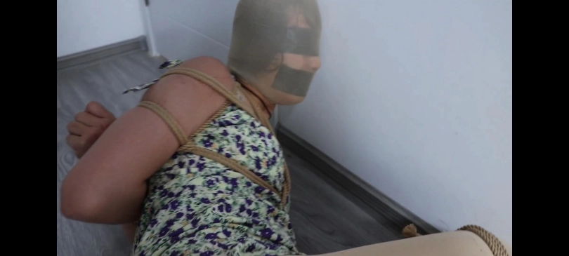 美女在家中遭到入室绑架,丝袜套头,胶带封嘴封眼,装麻袋,挣扎!