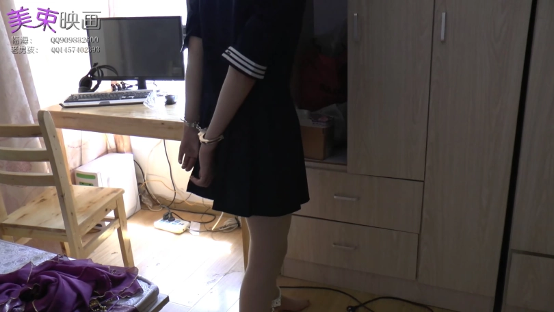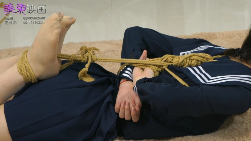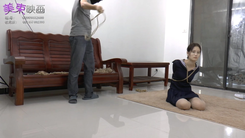 学生妹纸回到家后,换了鞋子就开始玩手机,门也忘了关。不料被歹徒闯入后,绑成驷马,逼问钱财藏在哪里。妹纸仗着自己耐绑,拒不告诉,并趁歹徒找钱的时候,脱缚逃跑。歹徒大怒,又把妹子绑成跟紧的欧式,蒙上眼睛,任她挣扎。谁知,妹纸又脱开了。歹徒只能使出最后的绝招,用上了手铐脚拷。妹纸没有办法,只能乖乖交出钱包。歹徒把妹纸吊拷在客厅,最后逃跑。