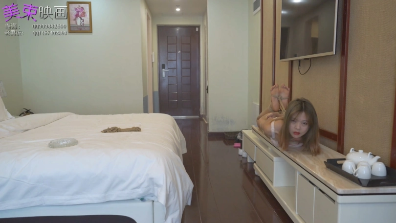 妹纸娇小清纯,是我喜欢的类型。约到宾馆,很爽快的脱掉外衣跟我玩内衣捆绑,把她的双脚绑在一起,让她在房间里跳来跳去还挺有意思的。不多说,看视频截图。