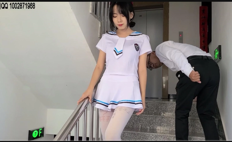 男主上楼,碰上女主下楼,男主盯着女主的丝袜看,男主回家