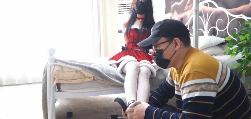 醒来后的眼镜小哥让小莉重新换上了一套圣诞服装,就在他玩的开心的时候,梦居然醒了。而另一边的小莉似乎也做了一个奇怪的梦。不过看样子眼镜小哥对于白天遇到的姑娘是朝思暮想了,于是快递小哥假装为小莉送快递上门。小莉接到快递后发现包裹里居然是几捆绳子,身后站着的眼镜小哥走到小莉身后说:“我送你的礼物喜欢吗?”眼镜小哥终于也是出手了,已送快递的名义成功混入小莉家中,接下来自然免不了将她好好的捆绑起来了~