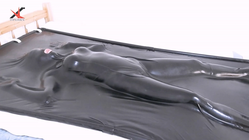 很多同好也购置了真空床来拍摄,热度消磨的差不多了。。。不同的是,我们这次拍了好几次合成在一起,所以几乎全程都是被床包裹起来的,擦了油之后亮晶晶的,换了两套衣服,凌子嫌窒息刺激不够,在两个敏感部位加了几道绳子来刺激。