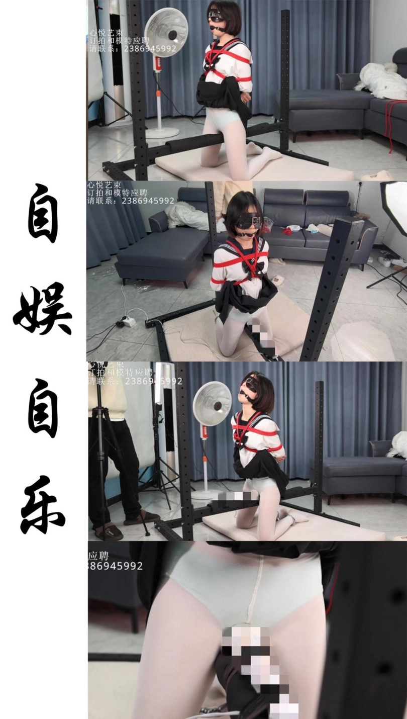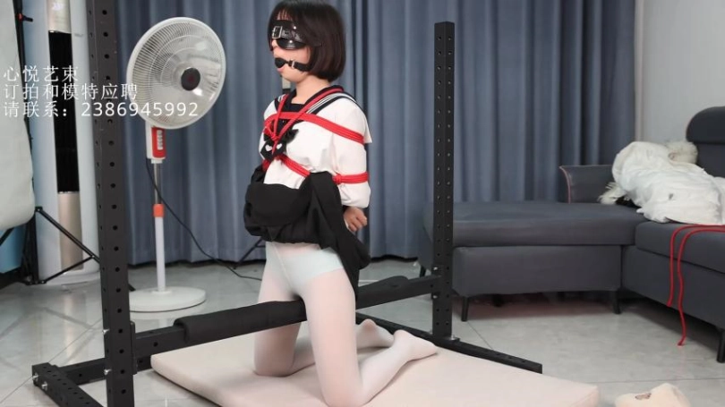 小萝莉的自娱自乐。日式后手嘟嘴蒙眼,脚上用脚铐限制在铁马上,横杆上贴着强力震动BB,小萝莉在自己努力的寻找gc。