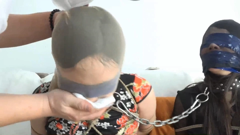 【视频时长】:00:31:00 【文件大小】:1140MB 这次总算不用一个演员演两个角色了,过了一把连缚瘾。 柳洋和林丹丹分别乔装打扮成一位应招绳模和服务员,前来抓捕一位敌人组织的手下。 柳洋如右图全身都被绑着坐在沙发上,还在和手下相互嬉笑。 林丹丹打扮成一位服务员(身上绑着龟甲)为手下端来饮料,请他喝。 手下笑了笑:你辛苦半天了,我敬你一杯吧。 柳洋:你喝吧~~ 手下不再装了,掏出手枪指着林丹丹命令她跪下。 手下:我早接到了情报,两位特工还是老实点吧。林丹丹试图夺枪,却被手下制服。柳洋试图呼喊求救,手下用枪顶住林丹丹的脑袋,威胁柳洋不许出声。之后手下用枪逼林丹丹用丝袜堵住柳洋的嘴,胶带缠绕封嘴。之后用绳子把林丹丹也绑了起来。两位特工耻辱而愤怒的等着手下,任由他捆绑自己。最终柳洋和林丹丹都被堵嘴蒙眼,手下拿来项圈为2人带上,再用铁链连接在一起。2人活动的距离受限,没有机会逃窜。手下脱下二人的高跟鞋,放在一边,之后为二人丝袜套头。柳洋用黑丝林丹丹用肉丝。 之后放置拍摄一会。 过了一会,手下来迷晕了二人。 敌人组织的基地里,柳洋和林丹丹背靠背被绑在一起,双手交叉绑在对方身前,大拇指被扎带勒在一起。双腿并绑在一起。(二人的高跟鞋并排放在一边)两人的眼睛都被布蒙住。两人的头都低垂着,看起来十分疲惫(因为她们被关了很久了) 敌人手下走了过来,提起丹丹的头:探员,都这么关了你们3天了,该招了吧? 柳洋:我们死也不会告诉你们组织的秘密的。 丹丹:落到你们这些混蛋手里,我们就没想过活。 组织人员恼羞成怒,往二人嘴中塞入堵嘴的丝袜,用胶带封嘴. ![]() ![]() ![]() ![]() ![]() ![]() ![]() ![]() ![]() ![]() ![]() ![]() ![]() ![]() ![]() ![]() ![]() ![]() ![]() ![]()