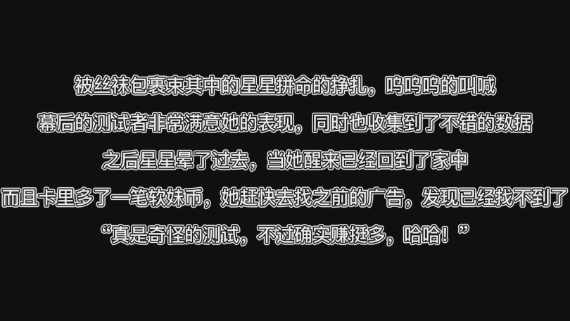 而让她感到奇怪的是,测试的设备竟然是一条丝袜...