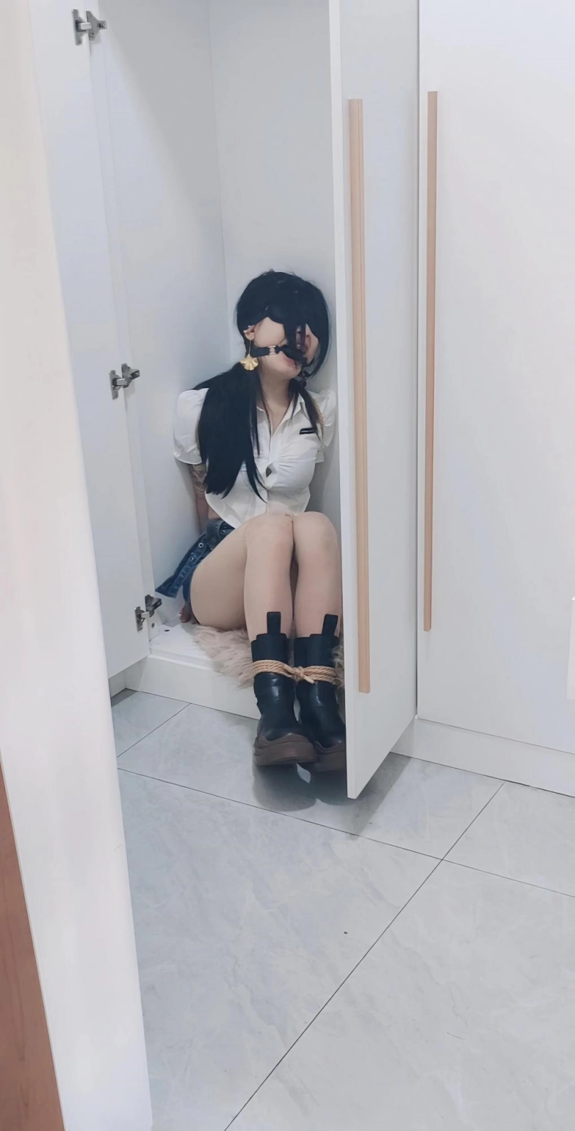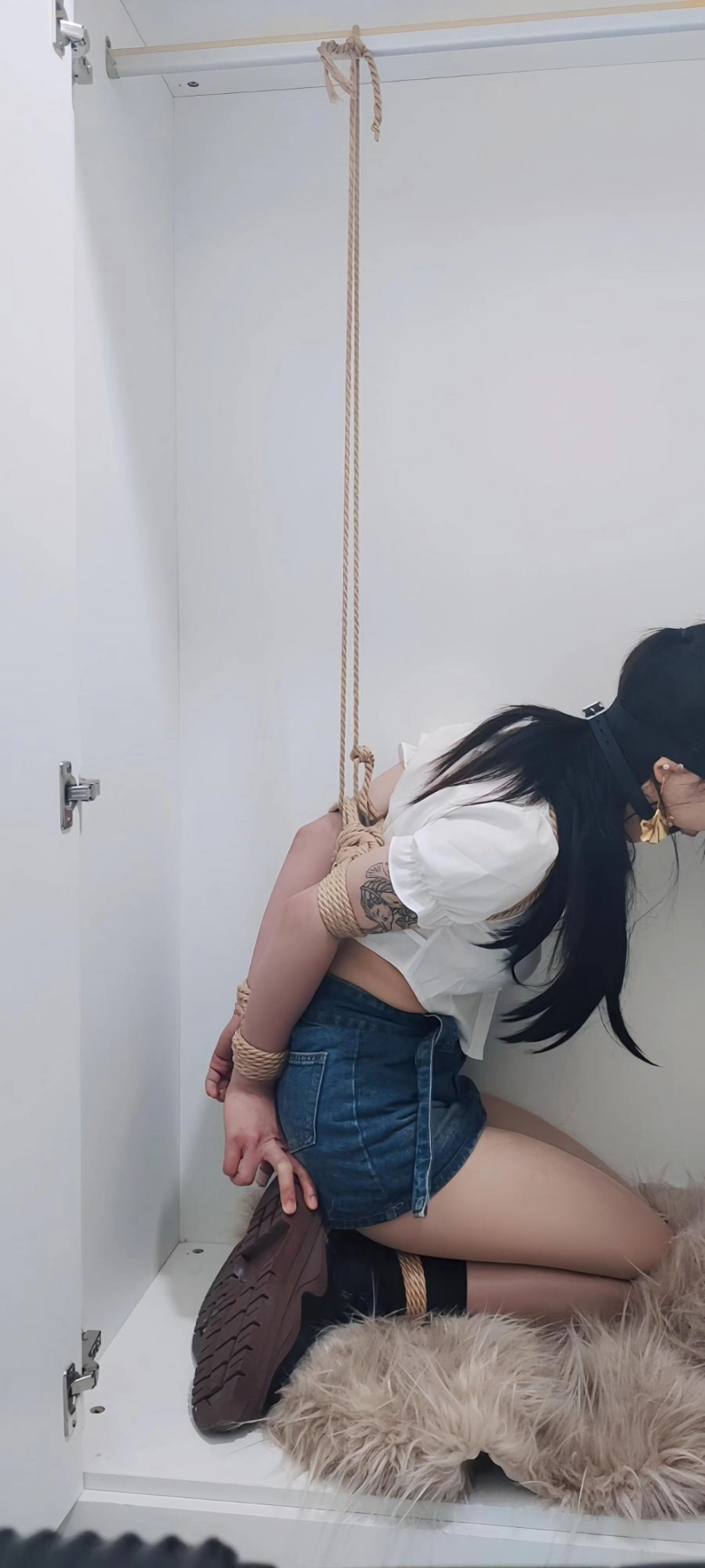最近大叔是真的爱上了各种捆绑放置,这次大叔可是手下留情了,没像上次那样放置丫丫8个小时,不过这样的驷马放置8小时是个人应该都受不了的,所以,柜子里的放置和客厅的驷马吊缚放置各一个小时吧,不然解开之后地上一瘫又啥也做不了了!柜子里放不了监控,所以是手机画面,客厅驷马放置是监控画面,剪切出来一部分供大家欣赏。
