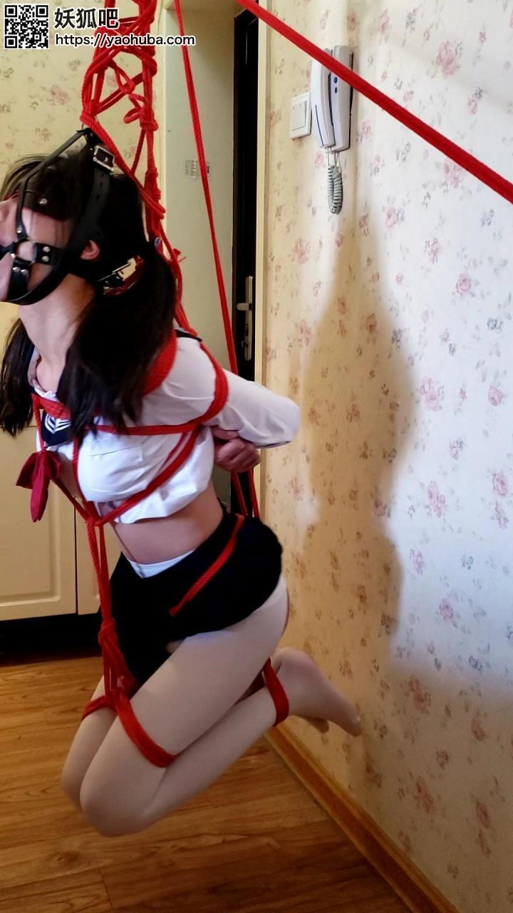 前一天晚上,晴子非要试试绑我,给我弄了个日式驷马,头戴马具和脚连上,折磨死了。今天我为了报复她,直接日式紧缚加马具口球固定,最后把jio也吊起来固定死,怎么挣扎都不可能挣脱,拿着鞭子使劲抽,好好出了一口恶气。(吊的时候用的腹肌轮,我发现这玩意比吊缚环还好用。。。)