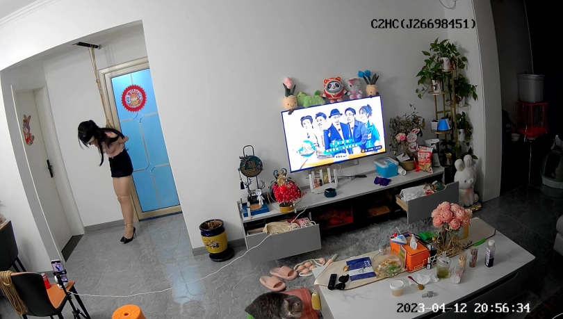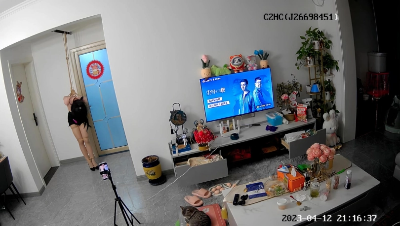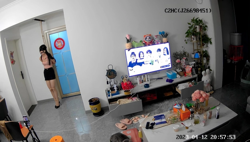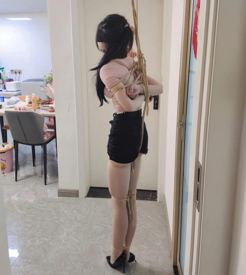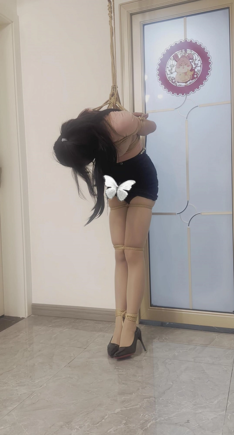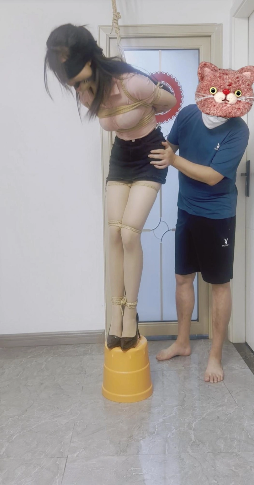 又来一部监控放置,这次是日式吊缚高跟鞋罚站,最近的定拍客户是花样百出,要求高跟鞋里面放红豆,,,疼的丫丫差点崩溃,,吊好离开之后,就听见监控里一直大叫,,感觉整栋楼都听到了,,,本来想放一张小板凳的,结果跟太细,板凳都被踩穿了!这样的吊缚也不敢太久,确实受不了,一个多小时的样子大叔就打道回府了,然后,,给她披上外套,带上了天台,,,下级绝对更精彩