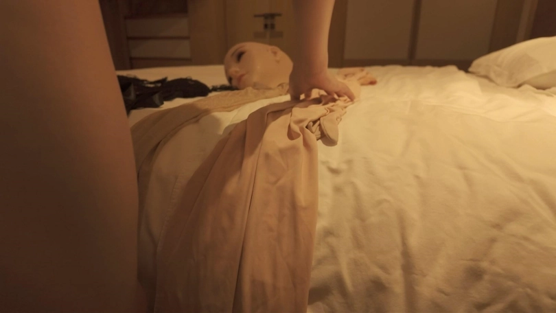 跟踪了很多天的别墅的女主人没想到她还有这么一个特殊的爱好,看着她一点一点的变成别人的样子,慢慢穿上了一层像皮肤一样的东西,然后套上了别人的面具还穿上了丝袜,最后竟然开始字魏,这个第一视角太爽了