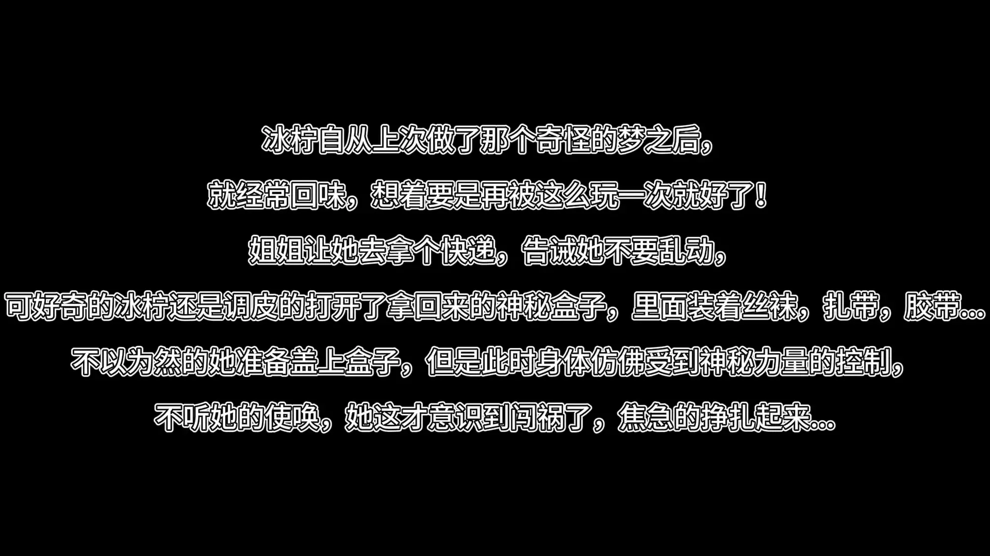 可好奇的冰柠还是调皮的打开了拿回来的神秘盒子,里面装着丝袜,扎带,胶带...