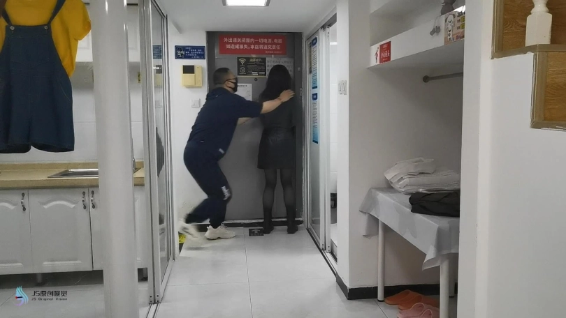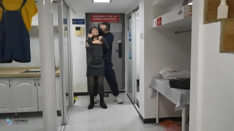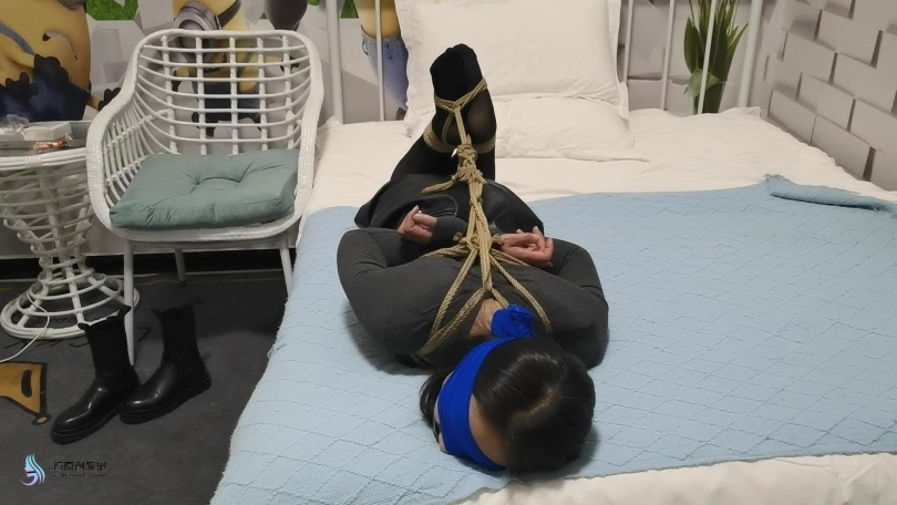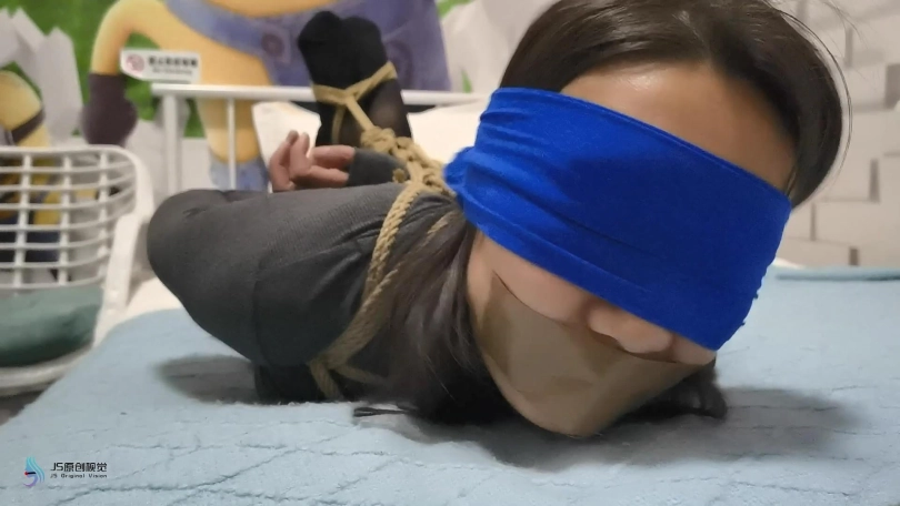 劫匪潜入女人家中,等女人回家被劫匪从后面捂住嘴巴将其捆绑在凳子上。女人挣脱了束缚,刚跑到门口就被劫匪抓了回来。生气的劫匪脱掉她的靴子将女人驷马捆绑在床上。嘴里塞上布团,外面用胶带封堵。劫匪开始猥琐女人,抚摸她的全身,亲吻她的丝袜脚。最后离开。最终女人挣脱束缚成功自救。