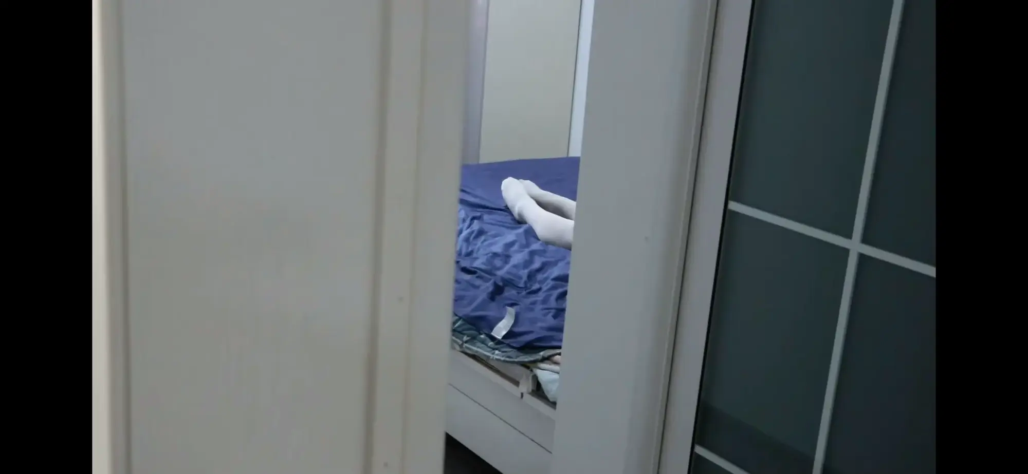 辛潼这边,一个人在卧室里,小七入室抢劫,得手后用白色丝袜将辛潼勒死了。