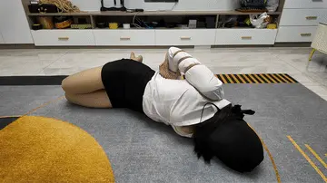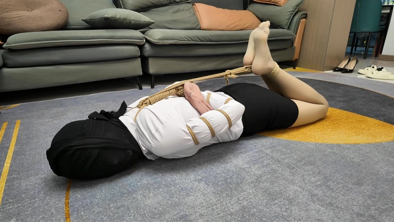 佳佳练完瑜伽在沙发上玩手机,一会困了就躺沙发上睡着了,此时房间溜进一神秘男子,佳佳迷迷糊糊发现有人在抚摸自己的丝足,不由惊醒大声问道,你是谁,神秘男子快速从口袋拿出毛巾将其捂晕,慢慢放到沙发上,这下可以尽情抚摸丝足了,时不时还抚摸一下酥胸,满足之后...把佳佳驷马捆绑,丝袜堵嘴,丝袜套头,扬长而去