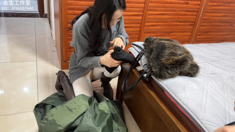 思琪将喵喵捆绑,并用胶带封嘴,随后对喵喵展开了调教:挠脚心、鞭打、上下其手。
