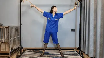 女老板正在办公室办公,被抓,搜身,带上手铐脚镣押走,审讯,换囚服,囚禁,吊起来拷问,老虎凳挠痒,鞭打,最后斩首