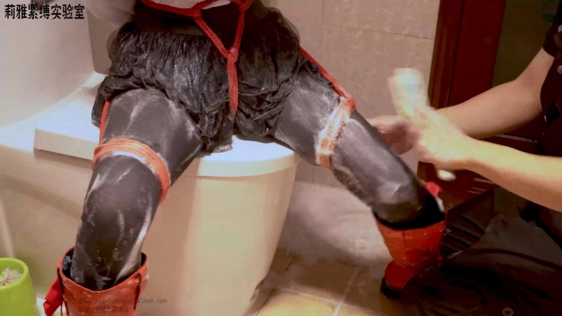 舔舐感觉后歹徒将奶酪带到浴室中,绑在坐便器上,用袜子塞住嘴巴又戴上口球,用喷头将奶酪全身冲洗感觉,又打上大量的浴液用刷子将奶酪的下身刷出很多泡沫,之后冲洗干净,重新打上浴液,直到歹徒觉得弄的足够感觉才停下