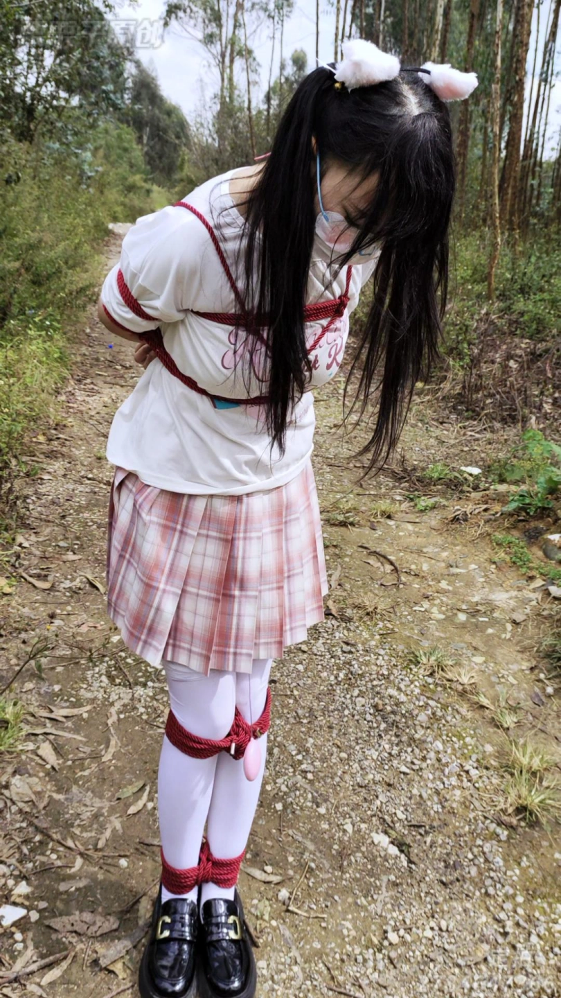 被控制的小M,被捆上双手和双腿,塞上快乐蛋带到小树林,让她在被快乐蛋折磨到腿软,随时都会被发现的风险下,让小M不停跳跳跳,让她求饶……