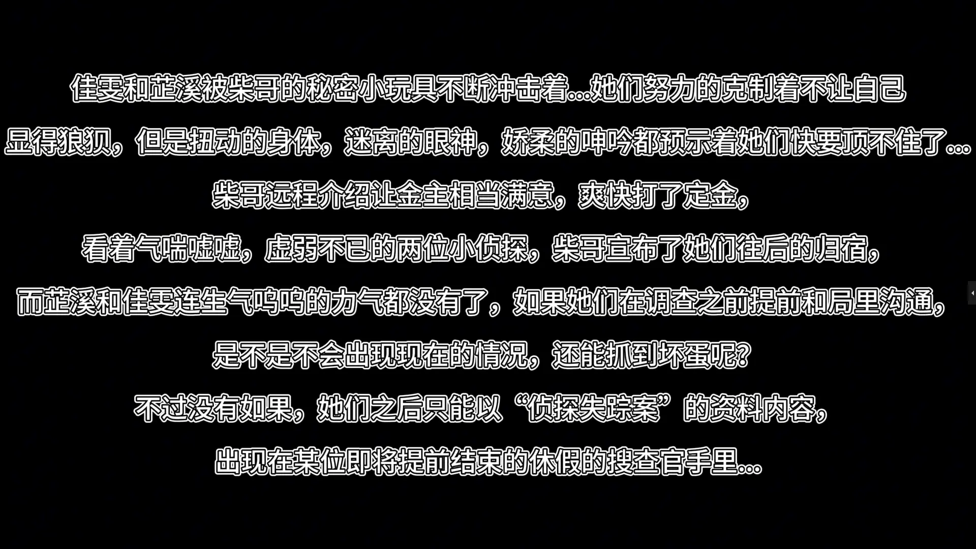 【视频时长】:00:30:10 【文件大小】:2112.69 MB 在肌肉松弛剂的作用下,两位小侦探瘫软无力的任由柴哥摆布, 被换上了一黑一白紧身包臀裙,就连娇小可爱的芷溪也散发出性感的魅力, 佳雯就更不必说,在黑裙包裹之下显得更加凹凸有致! 为什么突然换装呢?是因为有金主想看看新鲜的“侦探”货, 柴哥把佳雯和芷溪带上项圈,吊在了铁架下面, 两人只能难受的稍稍垫脚来回踱步,减轻痛苦, 接下来柴哥也将远程为金主介绍这两位新到的优质肉...不是,优质“产品”了! 佳雯和芷溪被柴哥的秘密小玩具不断冲击着...她们努力的克制着不让自己 显得狼狈,但是扭动的身体,迷离的眼神,娇柔的呻吟都预示着她们快要顶不住了... 柴哥远程介绍让金主相当满意,爽快打了定金, 看着气喘嘘嘘,虚弱不已的两位小侦探,柴哥宣布了她们往后的归宿, 而芷溪和佳雯连生气呜呜的力气都没有了,如果她们在调查之前提前和局里沟通, 是不是不会出现现在的情况,还能抓到坏蛋呢? 不过没有如果,她们之后只能以“侦探失踪案”的资料内容, 出现在某位即将提前结束休假的搜查官手里... 枫叶芷溪饰演侦探芷溪 枫叶佳雯饰演侦探佳雯 本集近距离特写展示的桥段,个人觉得拍得非常好,很有身历其境的感觉! 两位模特和男演的互动很默契! ![]() ![]() ![]() ![]() ![]() ![]() ![]() ![]() ![]() ![]() ![]() ![]() ![]() ![]() ![]() ![]() ![]() ![]() ![]() ![]() ![]() ![]() ![]() ![]() ![]() ![]() ![]() ![]() ![]() ![]()