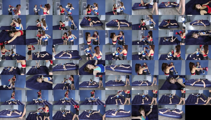 Emma (Blue) vs Eva (Red) fights each other in a boxing match. Whoever scores 3 knockouts first will win. Emma gets the first 2 KOs but Eva makes a comeback. Emma after getting 2 devastating KOs from Eva has lost a lot of stamina and she easily is beaten by Eva. Eva wins but she is not letting Emma get away that easily. Eva starts the beating on the poor Emma`s lifeless body and humiliates her with a final knockout that sends her to the emergency room. This video has more than 5 KOs + slow motion KOs + Eye Rollings + Feet Shot Resolution:1920×1080,fps:50 Duration:11m31s ![]() ![]()