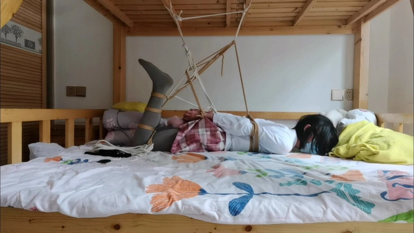 【视频时长】:00:33:17 【文件大小】:2986MB 哈喽,大家好⊙▽⊙。换了个房间玩绳子,最近想到了新玩法,利用双层床上面的床板挂的绳圈把驷马拉紧,只要躺下去这样整个身体就会被上面的绳子拉住,在动弹不得的情况可以好好享受小玩具啦(//∇//)。小璇的尾巴也好看唉,带上了后面有点莫名的[X_X]。这里是捆绑过程:前面先绑好了股绳,然后绑上大腿和双臂,准备工作完成后慢慢挪到绳圈下面,把股绳预留绳子穿过后面的绳圈和脚腕在回来打结,然后捆双臂绳子穿过前面的绳圈和脚腕再用多余的绳头做一个绳圈,收紧绳圈到双手勉强可以放进的程度,然后把绳圈绕过后面的股绳双手伸进去,这样再躺下就完成了。 ![]() ![]() ![]() ![]()