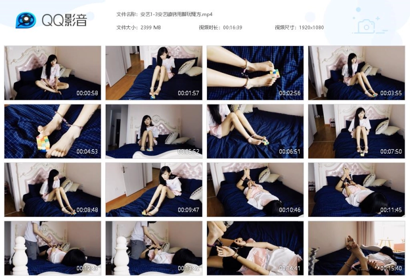 【视频时长】:00:16:39 【文件大小】:2399M 关键词:安艺 戴镣铐 用脚玩魔方 惩罚 挠脚心TK 手铐 脚铐 脚趾铐 驷马镣铐 安艺真的是大长腿美人,不过似乎是个冰美人哎,冰美人和镣铐更配哦!!!接上集,妹妹挑战失败被挠脚心惩罚,真是太爽了哈哈哈!!!哥哥又给了一次机会,一个更难的挑战,当然还是失败了,这次不仅挠脚心惩罚,还被镣铐驷马放置,这下彻底出不去了哈哈哈!!! 第二个挑战是在10分钟内至少弄对一面魔方,带着脚铐,只能用脚来。先给妹子戴上背铐、脚铐,开始挑战。觉得难度不够,给妹子加上脚趾铐,继续挑战。妹子挑战失败,被哥哥惩罚,驷马镣铐。哥哥挠脚心惩罚。最后哥哥把钥匙留给妹子,自己走了。妹子解开的过程中,钥匙掉了,很绝望。 超级大长腿女神安艺,172,47kg,绝对是大长腿啦!!! ![]() ![]() ![]() ![]() ![]() ![]() ![]() ![]() ![]() ![]() ![]()
