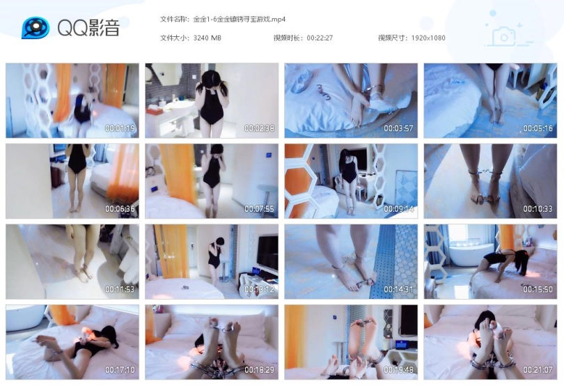 【视频时长】:00:22:27 【文件大小】:3240M 关键词:金金 镣铐寻宝游戏 戴上的镣铐越来越多 解不开了 手铐 脚铐 脚趾铐 芭蕾服 芭蕾鞋 水晶袜 妹子刚回来,看到了桌上的字条,有一个镣铐寻找游戏,找到哪些就把他们锁在身上。妹子觉得很好玩,决定参与。妹子找镣铐,先找到一把链铐,锁在脚腕上,走走。然后找到一个链子脚趾铐,脱下鞋袜,锁在脚趾上。妹子慢慢行走,找到一个脚趾铐,锁在了脚上。妹子最后找到一个手铐和三通,决定玩个刺激的,在床上驷马镣铐。袜子堵嘴,趴在床上,手铐锁住手,三通锁脚连接手脚。妹子很享受整个过程,很开心。妹子觉得有点难受了,却怎么挣扎也弄不开,着急了,要哭了。 ![]() ![]() ![]() ![]() ![]() ![]() ![]() ![]() ![]() ![]() ![]()