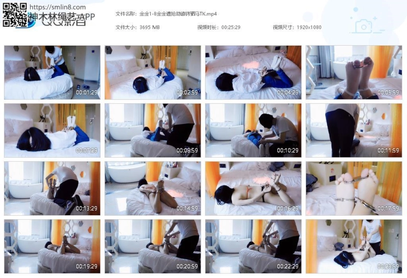 【视频时长】:00:25:28 【文件大小】:3695M 关键词:金金 抢劫 镣铐驷马 TK 手铐 脚铐 脚趾铐 休闲服 运动鞋 水晶袜 TK挠脚心 妹子自己进来,然后坏人敲门,妹子好奇打开了门,遇到抢劫,放到妹子,戴上手铐。脱下鞋,锁上脚趾铐、脚铐,手脚用板铐连起来,驷马锁住。妹子挣扎喊叫,恐惧。劫匪出现,解开镣铐,脱下袜子、衣服,只剩下内衣,再全部锁好,锁上脚心,脚趾铐、拇指铐,袜子堵嘴,塞上蛋蛋。妹子内衣挣扎喊叫,恐惧。坏人再次出现,逼问密码,拿出三筒把脚腕脚趾连起来,然后开始挠脚心。后来换个角度。 妹子被塞入蛋蛋,强制GC,最后被挠脚心,看点颇多啦!!! ![]() ![]() ![]() ![]() ![]() ![]() ![]() ![]() ![]() ![]() ![]()