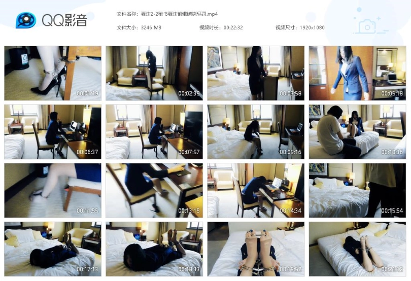 【视频时长】:00:22:31 【文件大小】:3246M 关键词:夏沫 秘书 丝袜 OL装 手铐 脚铐 脚趾铐 丝袜破坏 秘书被老板批评,因此被老板用长脚镣锁在椅子上办公,一只脚拴在椅子上。秘书干了一会,想偷懒,拉着椅子到处走,然后发现脚镣从椅子上弄下来了,很开心。老板回来看,秘书竟然没好好办公,而且从椅子上跑了出来,于是把她的两只脚都锁了起来,让她好好工作。秘书干了一会又不想干了,戴着脚镣下地走走,活动一下。老板再回来了,发现秘书又没好好办公,撕开丝袜,锁上脚趾铐、板铐脚腕,让她在椅子上好好工作。秘书工作一会,又累了,看着动不了,索性趴桌子睡了。老板看到后,十分生气,把秘书弄到床上,驷马镣铐,留下秘书走了。秘书挣扎很难受,一边求老板回来,一边咒骂老板。 ![]() ![]() ![]() ![]() ![]() ![]() ![]() ![]() ![]() ![]() ![]()