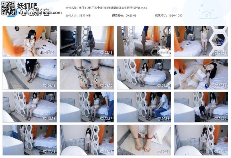 【视频时长】:00:23:08 【文件大小】:3337M 关键词:桃子 家中 镣铐 自缚 遭猥琐外卖小哥 吊铐折磨 手铐 脚铐 脚趾铐 蕾丝内衣 凉鞋 我们可爱的桃子小姐姐,竟然在家中自己玩镣铐自缚,等着外卖小哥来解救自己,结果被外卖小哥更严厉的惩罚,遭遇超级咸猪手,脚趾点地还被锁上趾铐超级疼的!!!真是太可爱了哈哈哈!!! 妹子一个人回家,想玩点刺激的,塞入[不可描述],遥控器和钥匙藏在远处,戴上脚铐、脚趾铐。妹子下地走,把遥控器和钥匙藏在远处,感觉十分刺激。妹子想玩点更刺激的,锁上三通,把一只脚锁在柱子上,彻底动不了了。同时订了份外卖,等着外卖小哥来解救自己。妹子玩了一会,拔脚镣却弄不掉。妹子觉得既然走不了,不如多锁一点吧,于是背后锁上手铐。妹子十分兴奋,期待着遇到的外卖小哥是什么样的人,感觉到了[不可描述]。外卖小哥来送,见到妹子十分吃惊,询问情况。妹子拜托小哥给自己解开,告诉他钥匙和遥控器在哪。小哥拿到钥匙和遥控器后,面露猥琐,要挟妹子和他一起玩,要么就把这些传出去,并伸进内衣里一通乱摸。妹子十分惊慌,连声制止却动弹不得。小哥解开妹子,抱到架子前,双手举高吊起妹子,踮起脚尖,然后离去。留下妹子挣扎,十分难受,双脚只有脚尖点地,还被锁住了脚趾,十分疼痛,哭了。 桃子大美人不多说,表现力也是极佳,可以说是我拍过最漂亮的模特!!! ![]() ![]() ![]() ![]() ![]() ![]() ![]() ![]() ![]() ![]() ![]() ![]() ![]() ![]() ![]() ![]()
