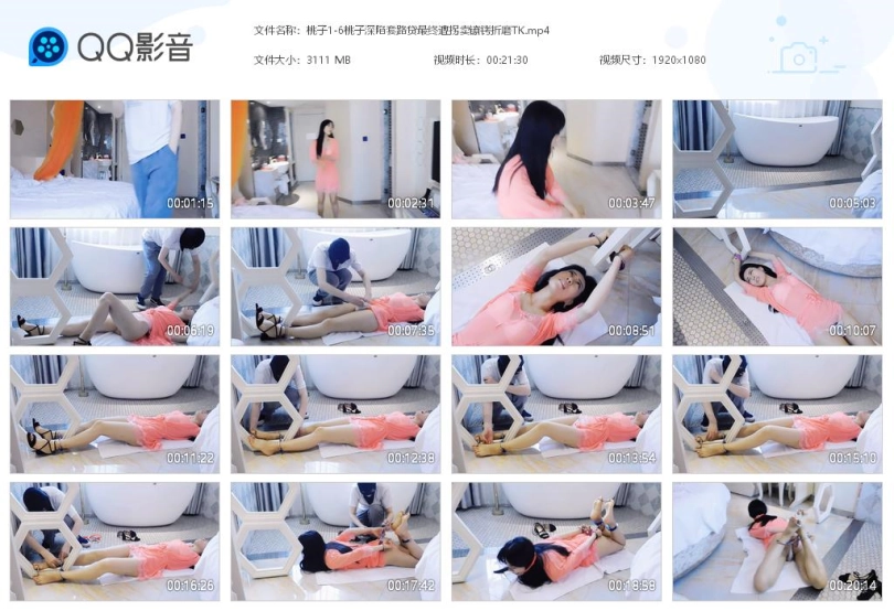【视频时长】:00:21:29 【文件大小】:3111M 关键词:桃子 深陷套路贷 最终遭拐卖 镣铐折磨 TK 手铐 脚铐 脚趾铐 长裙 高跟鞋 口球 女神桃子缺钱却得不得了,竟然打起了校园贷(套路贷)的注意,交上裸照就可以拿到几千块钱,美差啊!!!然而3个月之后就变成了十几万,放贷大哥要求桃子还钱,并以裸照威胁,桃子最总答应来肉偿还,真是可怜一个大美人了哈哈哈!!!然而放贷大哥觉得肉偿太慢了,干脆直接把美人卖了算,这下桃子可惨了哈哈哈!!!桃子用生命告诉我们,珍爱生命,远离校园贷(套路贷)!!! 放贷老大打电话给妹子,要求妹子尽快还钱,否则就把裸照发给亲朋好友。妹子说没有钱,老大则要求妹子到指定酒店肉偿。妹子来了,妹子质问借了几千为什么要还十几万,老大解释道利息太高。老大要求妹子肉偿,妹子十分不情愿,但还是接受了。这时老大终于放下了脸,让妹子喝点饮料。隔了一会,妹子感觉不对劲,然后就睡过去了。这时老大又有了新的想法。老大把妹子抱到地上,手脚分别穿进架子里,锁住,塞入[不可描述],然后离开。妹子醒了,然后发现躺在地上,也没有人,手脚被锁住了,很着急,各种喊叫,企图弄开。老大回来了,说他觉得肉偿实在是太漫长了,干脆把妹子卖了算,正好还清这笔钱。妹子很震惊,求饶,希望通过肉偿还债。老大不听,执意要卖掉妹子,脱下妹子高跟鞋,再锁上脚趾铐。老大挠脚心玩弄妹子,妹子很难受,求饶。老大玩够了,把妹子驷马锁在地板上,戴上口球,然后离开,准备去找卖家了。最后留下妹子挣扎,在地上爬行,要哭了。 桃子大美人不多说,表现力也是极佳,可以说是我拍过最漂亮的模特!!! ![]() ![]() ![]() ![]() ![]() ![]() ![]() ![]() ![]() ![]() ![]() ![]() ![]() ![]() ![]() ![]()