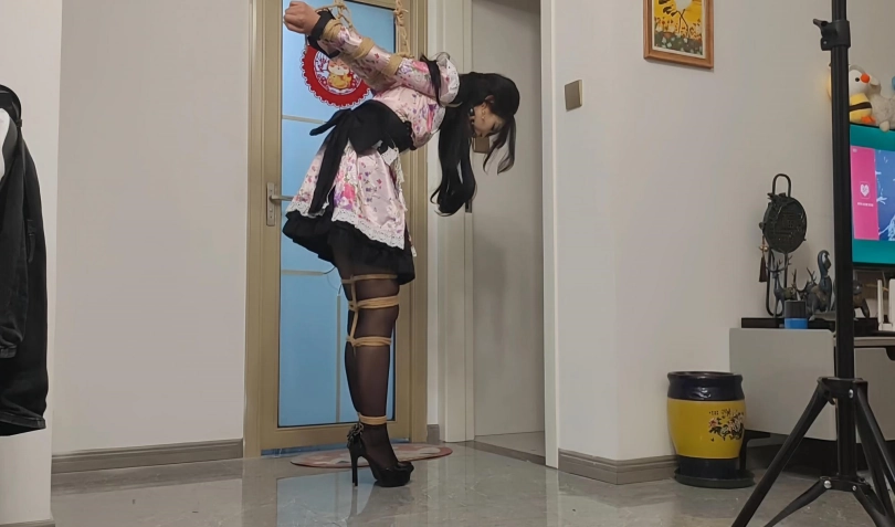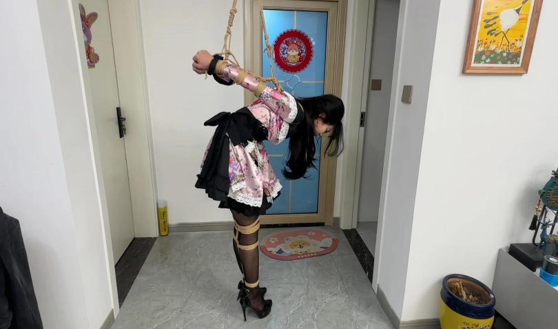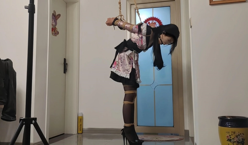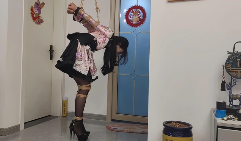 日式和服+欧式紧缚后手吊+黑丝高跟并腿缚,这样的欧式后手紧缚再加[X_X]几个小时,丫丫的承受能力也是在不断的进步,就是高跟鞋的跟太高了15CM,多次没有站稳然后原地打圈,疼的呜呜直叫,确实姿势太诱人,大叔还是没有把持得住,于是乎,该内涵的都内涵了,