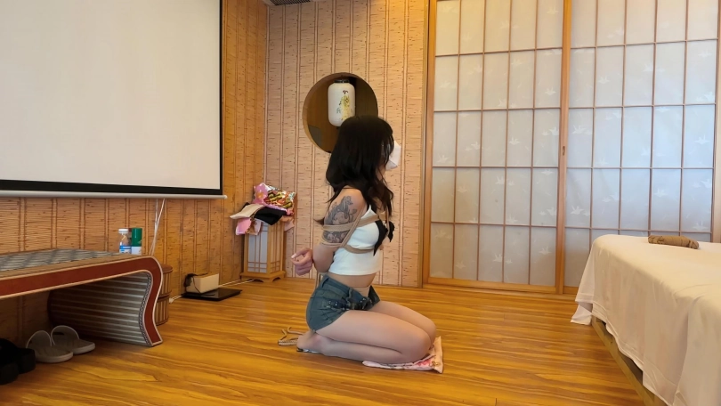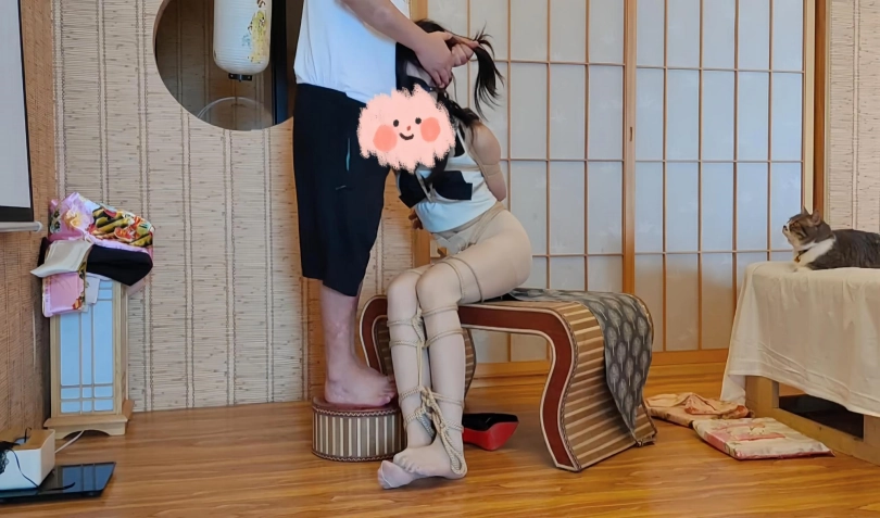 假期旅行终于开始了,第一天就找了一间日式酒店,这样的风格必须得配一个日式捆绑了,依旧是捆好之后丫丫被大叔罚跪在客厅,然后就出去小逛一圈,回来之后发现m居然挪动了位置,那还不来点惩罚,于是开始了各种大家想看的完美内容。