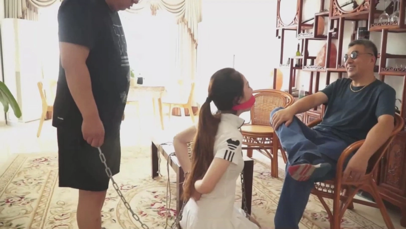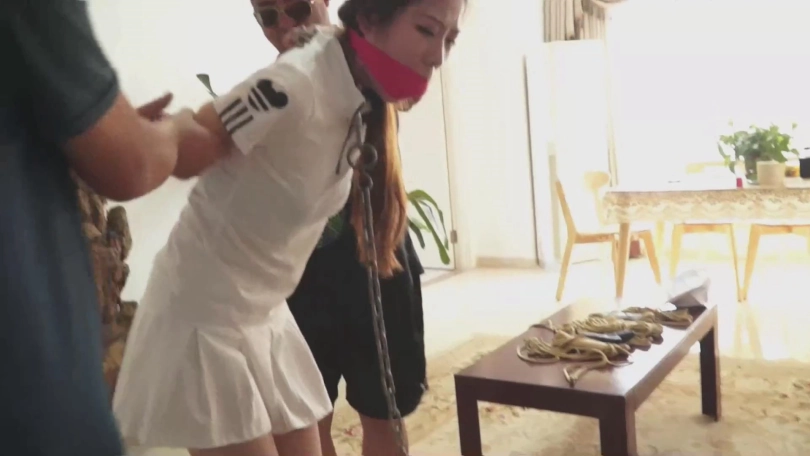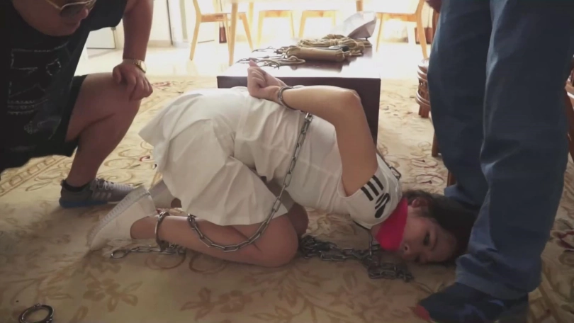 【视频时长】:00:22:00 【文件大小】:650MB 繁华的某城市,车辆川流不息。私家紧缚会所的老金好像闲来无事,竟然也 去跑黑车。。。。。。感觉不像在 拉活,他带个 墨镜在 摇下的 车窗边,左看右看。好像在寻找着什么,对了,这家伙是开紧缚会所的,应该是在猎取 美女吧。苹果手机特有的 铃声响起,老金从 车窗旁缩回了 脑袋,拿起电话接听“喂,麻三,咋了。有事吗?。。。 。。。行,你等我,这 就回去。老金挂了 电话,把电话扔在了 副驾驶座上,发动了 车子。 老金的 车子停在了某花园小区内,他下了 车,急急忙忙的 走进了 一栋楼房。“梆梆帮“他敲响了 一处住房” 门知啦一声开了 ,开缝里 伸出个脑袋:一头 灰白的 短发,满脸的 未老先衰的 褶子:老金,快点进来,“这小子一 口的京腔。 老金问道.”麻三,你 着急忙慌的有什么急事,:麻三说道,当然有好事了,来来来“”,说着话拉着老金坐在 了 沙发上,随手拿起了手机,说道:你看看这个 新闻、(老金盯着麻三的手机看了一会)说道,这不 就是慈善捐款 吗?看这玩意干什么,麻三冷笑了一声说,“”你听我说啊 ,捐款这 小子我 认识,不太熟悉,时不时的装装善人, 还 捐款。有 钱烧的,你知道吗?他家那丫头长的不赖,这 小子可亲他家丫头了,咱是不是把他丫头绑了,弄他点钱 花,顺便咱也 可以 好好教育一下那小丫头。”老金一脸懵逼的 看着麻三说 :‘`这行吗?他家里不会有 保镖跟着 吧。”麻三翻着 眼睛看着老金:`你 肯定看电影电视剧看多了,哪那么多保镖啊,我见过他家丫头 ,平时就爱玩,都 是 自己外出,和 别人家的 丫头差不多,只不 过穿的好点,花钱多点罢了。”老金摸着下巴脸冲前方沉思道:如果这 样的话 肯定可以,他又扭过头看着麻三说:那 咱们得好好商量一下,去踩踩点。`得嘞,就 这么办,“ 麻三从沙发上站起身,直接往卧室走,边走边和 老金说,“来来,我这还有个好玩意呢,你 瞅瞅”老金诧异 的眼神也站了 起来道:啥好玩意`边说边跟了过去。(镜头从 屋里拍)门被麻三推开一半,老金的脑袋也 跟着伸 进了 屋里。(镜头再从外面拍,)卧室的床上,粉色的 床单盖着一个半米高的 物体。还不 时的 扭动一下,(显示 一下老金睁大眼睛的 表情)麻三走到床前说道:老金,让你 看看我 新来的 好玩意,他说着话猛的 掀开了 床单。 一个塞着嘴巴的女孩(依然饰)被五花大绑。撅着屁股跪在床上,双腿无法并拢,原来两脚踝被 一根金属棍 大幅度分开,身上只 穿着三点式的 黄色内衣,被撕烂的 衣服和 丝袜仍在一边。 麻三笑道:怎么样老金,还 不错吧,“着时候 那 女孩 听到了 动静,开始 用 堵着的嘴大声的 呼救(救命啊, 放开我),麻三说道,放开你,放开你我们还怎么 享受呢?老金,这本来就是 给你的 私人会所的,二万,不贵吧, 如果 可以 就先弄走吧,然后咱们再开始踩点准备弄那个 大的。老金目光没有 离开那 半裸的女孩,直接说道,我现 在就给你点钱。 等天黑了吧,她弄回我的会所,说着坐到了 床上,抚摸着女孩的 头说:会所现在正缺人呢,美女,我们好好 享受吧。说完种种的 给了 女孩屁股一巴掌,然后发出 阴险的 笑容。。。。。。。。 这个 城市刚刚 立秋,但还是暑意未退,商厦的 大门口,走 出了 个 美女,一身白色的 休闲装,带着棒球帽,脸 上带着 副反光的 金色墨镜,她快步走下 阶梯,商厦的大门口又快步走出了 两个人,麻三和 老金。着两人一直不是很 远的 跟在那个 美女身后。老金与麻三已经基本 摸清了 白富美的活动情况,女孩爱玩,爱逛,都是单独一人。这已 经是他们跟踪女孩的 第三天了。今天他们要 动手了。。。。。。 白富美女孩(李雨潼饰)走到自己停车的地方,打开了车门。 麻三快步跟了上去,掏出了 一把枪,顶住了女孩:坐到后面去,快点。着 时候老金也 跟了上来,直接钻进了 驾 驶室。 女孩被 逼着 坐到了 车后面,麻三掏出了单独的口球说道:张嘴。 女孩害怕的 张开了嘴,一个 红色的 球塞进了女孩的嘴里。 红色的 胶带又吧 嘴严格的 缠了起来, 麻三抓住女孩的 双臂拧到了背后,掏出早就准备好的麻绳把女孩结实的 捆了 起来。前面老金说道,麻三, 先别复杂的 紧捆她了,等 弄到会所后再享用她。:嘞,麻三说着已经把女孩手脚都捆好了。喘着气坐在一旁说, 老金开车吧。 麻三翻了翻女孩的皮包,掏出来很多钞票。 麻三:居然还有意外收获 麻三推搡着李雨潼走在黝黑的 楼梯内,边走边说:小妞,为了你 我们还得爬楼梯,电梯也不敢上,一会到了家 好好 收拾你,女孩发出反抗求饶的 叫声。 三人半天功夫爬上了16楼,已经累的 气喘吁吁的老金掏出钥匙打开了房门,三人进了 屋,开了灯。 老金进里屋拿出一推金属的链子手铐等物,喊到,麻三,来,先给着小妞带上这些。固定好了也好休息会。 两人说着,七手八脚的给女孩上了项圈,手铐,脚铐,背铐和项圈也 连在了一起。 李雨潼可怜的眼神看着麻三。并 用含糊不清的 声音求饶着,麻三说 道,不用求我,等你有 钱的 老爸付了 赎金 自然就放你回去了,现在你说啥也没用,你就是我们案板上的 肉啊,哈哈哈。 麻三:美女又见面了,过的舒服吗? 麻三:你很快就有伴了。 依然:呜呜呜呜呜呜。。。。。。 麻三:拷紧一点。 老金:放心吧!好了。 白富美:呜呜呜呜呜呜。。。。。。 麻三:走,带你见见你的小伙伴。 麻三:我想你们会相处的很愉快的,哈哈哈哈哈哈。。。。。。 白富美:呜呜呜呜