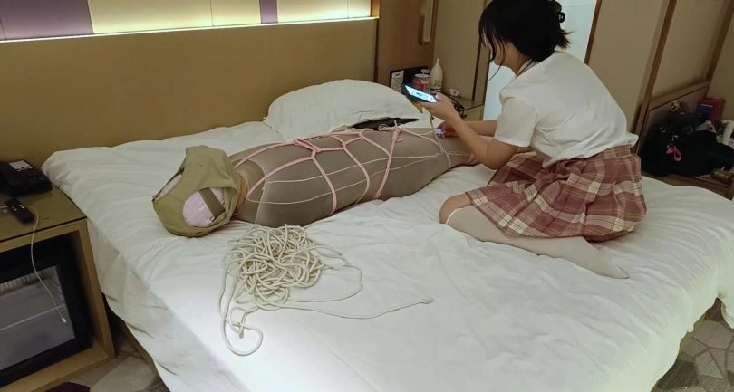 光是用丝袜全包还不够,珊珊还专门用绳子加固了不少圈,更是直接用她穿了五天的臭袜子套在了丁丁口塞上硬塞到我嘴里了,无论怎么求她都没用,还拿出来我昨天玩弄她GC了3次的内裤套在头上,这次还专门买了训练器,套在丁丁上疯狂折磨,说让我把她的内裤和袜子洗干净才解开